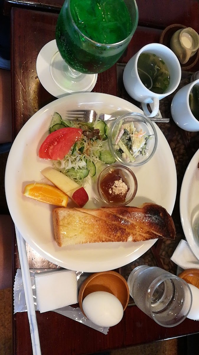 The star of the menu is undoubtedly the delightful pancake morning set, a true breakfast gem that comes at an unbeatable price. For only 550 yen, you can indulge in soft, fluffy pancakes topped with fresh fruits like kiwi and banana, accompanied by a luscious scoop of ice cream and whipped cream that promises to elevate your morning delight to heavenly heights. The set also includes a refreshing salad, miso soup, and a steaming cup of hot coffee, making it a well-rounded and satisfying meal to kickstart your day.